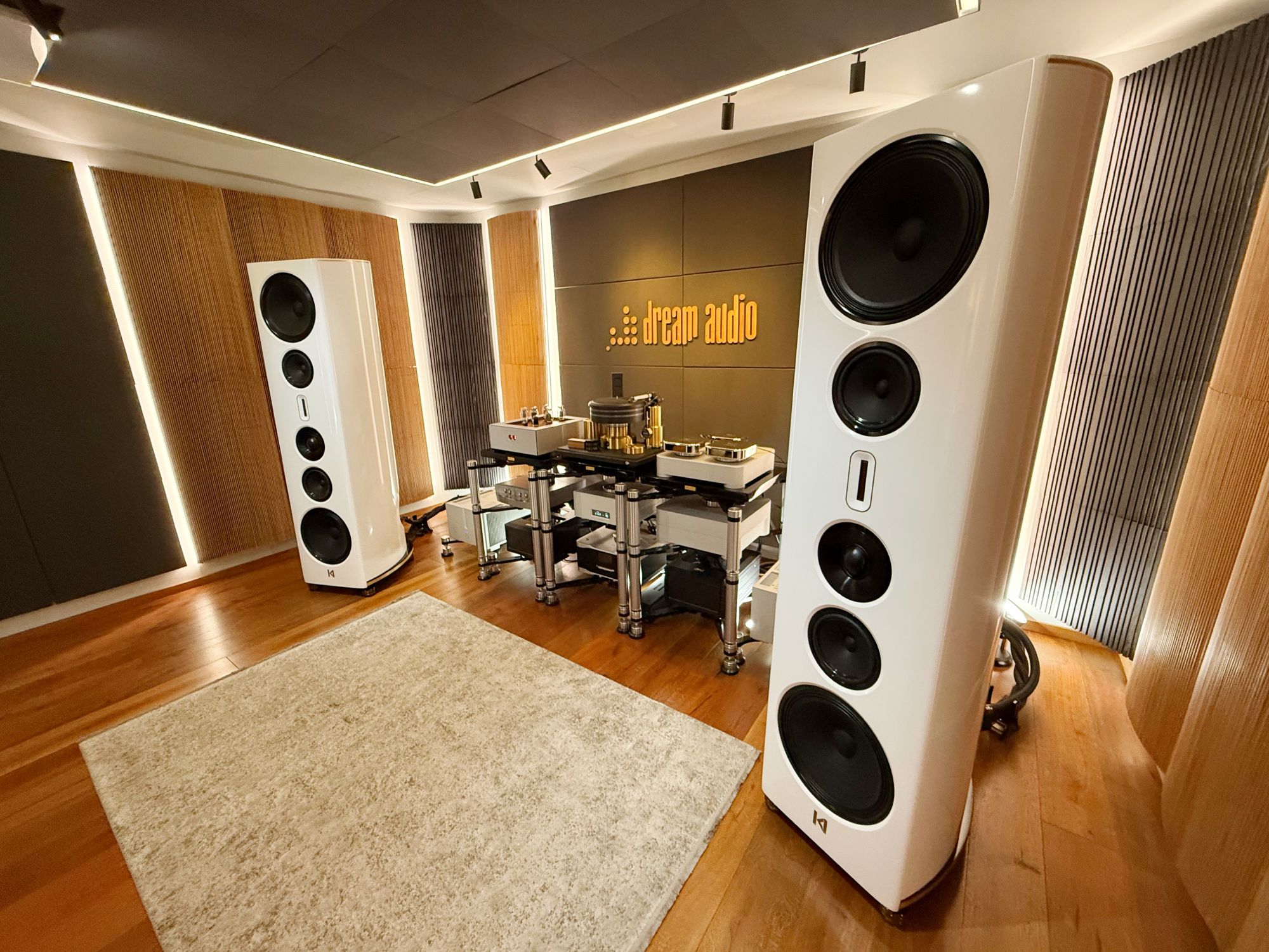 Sestava stála na Taiko Olympus včetně výstupního I/O XDMI modulu s přizpůsobením D/A převodníku Lampizator Horizon 360. Dále jsme měli Ypsilon PST 100 MK2 jako předzesilovač a koncové stupně Hyperion od stejného výrobce. Propojeno bylo kabeláží Stage III Concepts v úctyhodném počtu, což podtrhoval filtrovací a zemnící systém Telos v nejvyšší dostupné specifikaci. Srovnávali jsme například s YG Acoustics Vantage 3, Revival Audio Atalante 7 Evo nebo YG Acoustics Vantage 3 Live (aktivním systémem typu „all-in-one“), do mixu elektroniky ještě chvíli přibyl třeba Jadis Ode nebo WADAX Studio Player.