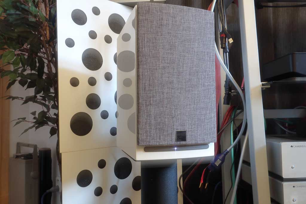 Aktivní provedení se od toho standardního neliší v žádném rozměru, pouze na přední straně místo loga najdete horizontální linku, která počtem rozsvícených diod indikuje hlasitost a v zadní části najdete v místě klasicky okupovaném vaničkou s reproterminály plochu, kam se vešla napájecí zásuvka, signálový konektor (analogový linkový vstup, pokud byste nechtěli využít standardního komfortu bezdrátového přenosu, řízeného s mimořádnou jistotou, stabilitou a rychlostí jednotkou Sound Hub) a také ploška s tlačítkem, díky které můžete v bezdrátovém systému určit, v roli jakého kanálu ten který kus bude pracovat - to se dělá jednoduchým stisknutím, které rozsvítí danou pozici na schématu a činí tak nastavení jednoduché jako facka.