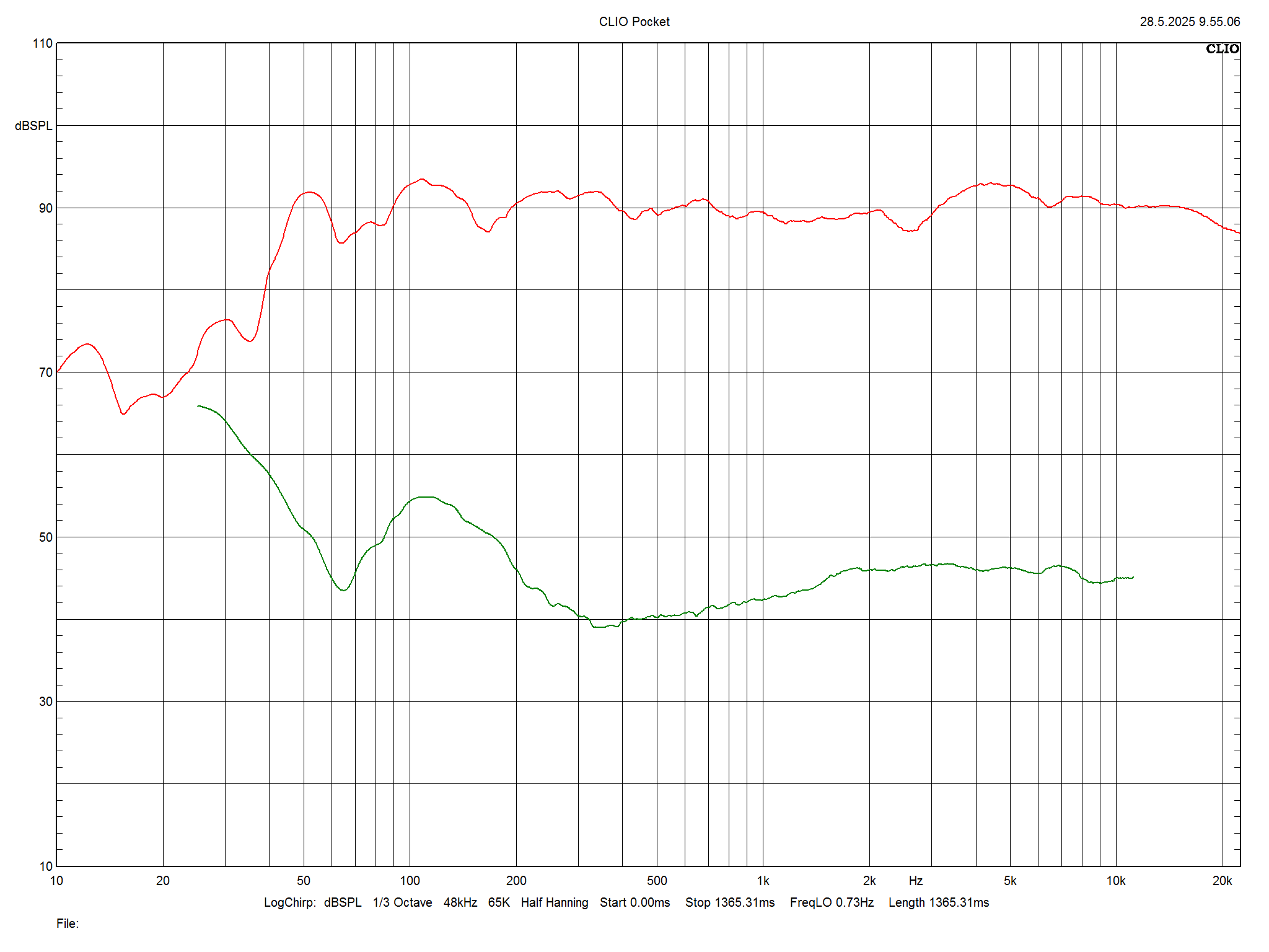Měření lze pokládat za 100% věrohodné v pásmu 200 Hz a výše, v pásmu 10 - 200 Hz je vidět vliv akustiky místnosti. Měřeno bylo pomocí software Clio Pocket a kalibrovaného mikrofonu, reprosoustavy byly umístěny v poslechové pozici patrné z doprovodných fotografií. Měří se v referenční ose při průměrné úrovni akustického tlaku 80 dB / 1 m.
