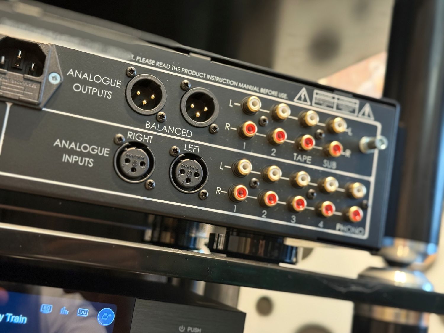 Spodní patro patří vstupům – krom jednoho v XLR formě je tu kvarteto cinchů a pak ještě phono rozhraní (zvládne MM i MC přenosky). Na druhé straně pak paleta vstupů digitálních. Využít jich můžete spoustu, jakkoliv v lehce konzervativní konfiguraci. Jedno USB, tři koaxy a tři optiky. Mezi oběma sekcemi najdete ještě dva 3,5 mm jacky, sloužící jako vstup a výstup 12 V spouštění. Zajímavost – každý z analogových vstupů lze nastavit jako plně průchozí (tj. s vynecháním regulace) pro režim domácího kina.