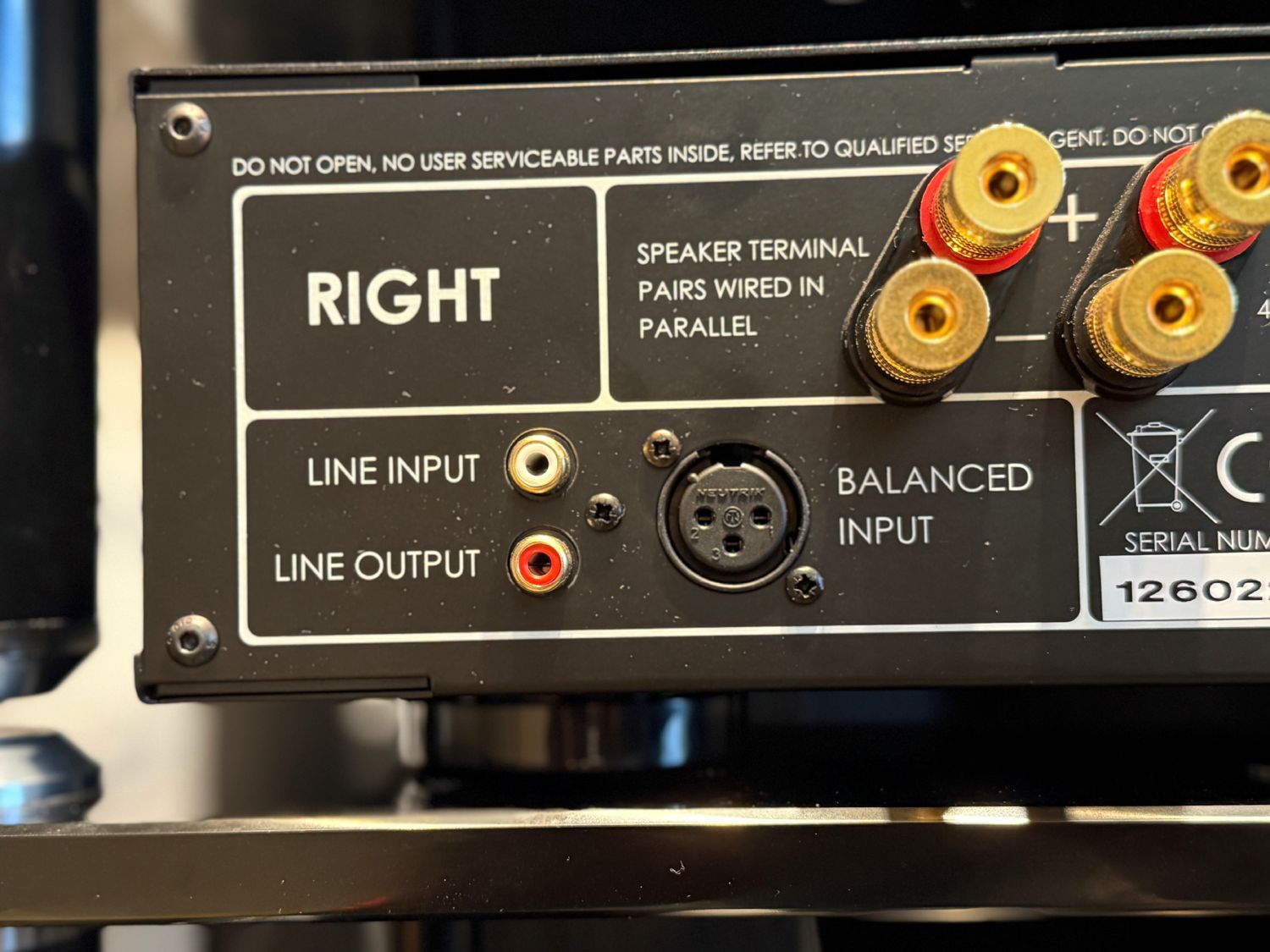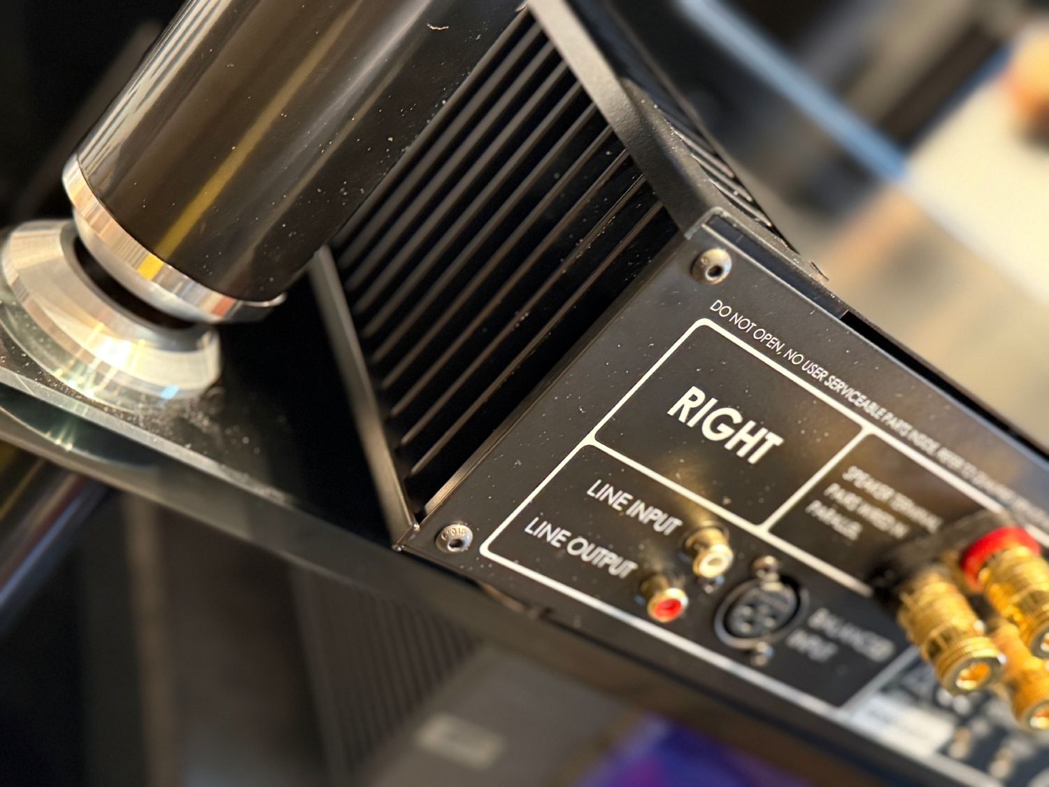 Po bocích se odkrývá pohled na chladící profily, nejvíc je toho však k vidění vzadu. Napájecí zásuvka je opět nahoře uprostřed, kolem ní najdete na každé straně dva páry reproduktorových výstupů v paralelním spojení pro možnost bi-wiringu. Máte tu XLR i RCA vstup, ale žádnou páčku pro volbu toho používaného. Z praktického hlediska je fajn také přítomnost výstupního cinche, který vám umožní řetězit koncové stupně třeba v bi-ampingové konfiguraci, stejně jako 12 V spínání.